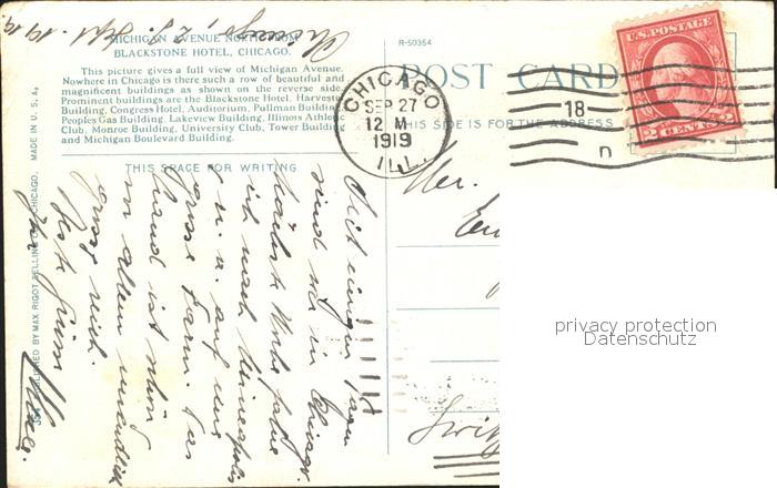 11693270 old postcard Chicago Illinois Michigan Avenue Blackstone Hotel postalisch gelaufen Erhaltung siehe scans KatCode: 14140150000000