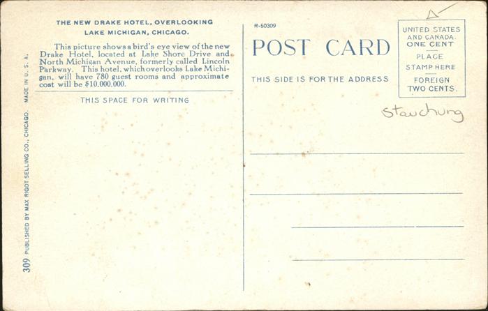 11321335 Chicago Illinois New Drake Hotel Lake Michigan postalisch nicht gelaufen Erhaltung mit Maengel KatCode: 14140150000000