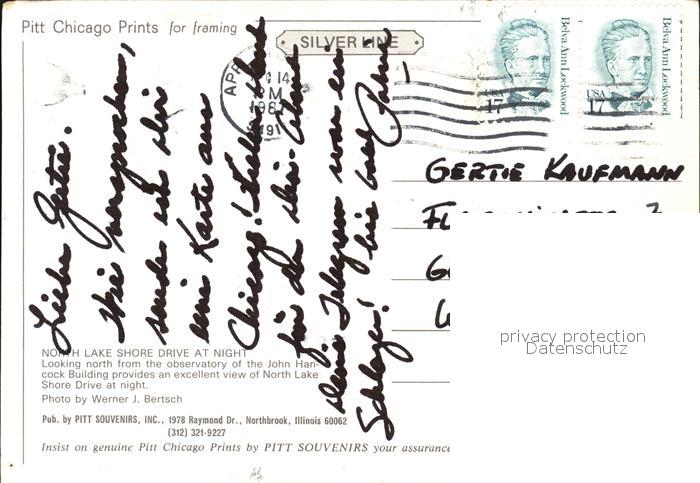 72444695 old postcard Chicago Illinois North Lake Shore Drive at night aerial view postalisch gelaufen Erhaltung siehe scans KatCode: 14140150000000