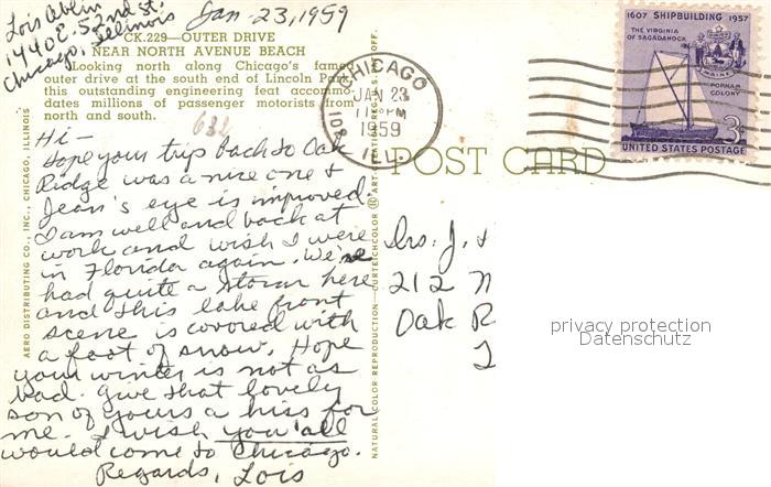 73062858 old postcard Chicago Illinois Outer drive near north Avenue Beach postalisch gelaufen Erhaltung siehe scans [FriedD77] KatCode: 14140150000000