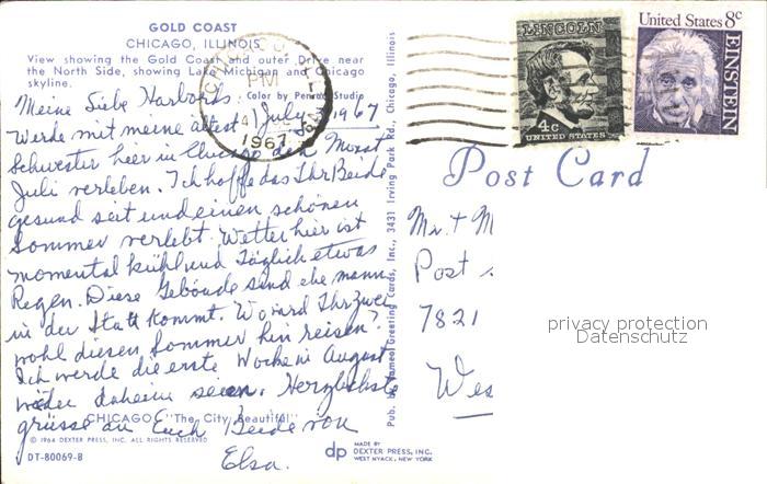 11693871 old postcard Chicago Illinois Panorama Gold Coast Lake Michigan Skyline aerial view postalisch gelaufen Erhaltung siehe scans KatCode: 14140150000000