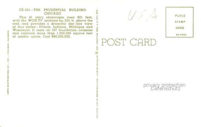73278128 Chicago Illinois Prudential Building postalisch nicht gelaufen Erhaltung siehe scans [LiesaD40] KatCode: 14140150000000