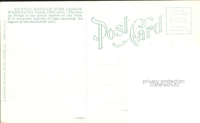 72081882 Chicago Illinois Rustic Bridge over Lagoon Washington Park postalisch nicht gelaufen Erhaltung siehe scans KatCode: 14140150000000