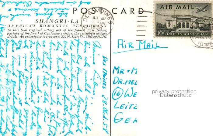 73257870 old postcard Chicago Illinois Shangri-La Restaurant postalisch gelaufen Erhaltung siehe scans [NatalD47] KatCode: 14140150000000