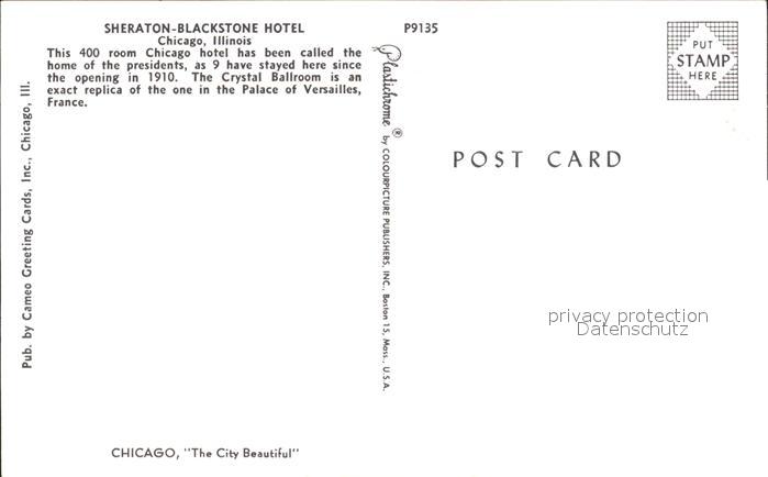 72922176 Chicago Illinois Sheraton Blackstone Hotel postalisch nicht gelaufen Erhaltung siehe scans [WerneD48] KatCode: 14140150000000