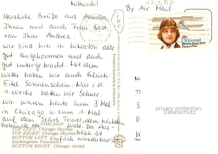73152534 old postcard Chicago Illinois Skyline Buckingham Fountain aerial view postalisch gelaufen Erhaltung siehe scans [FriedD77] KatCode: 14140150000000