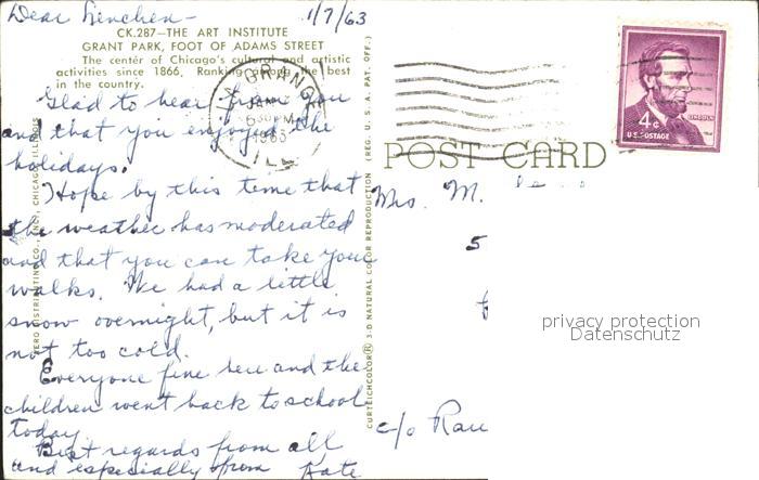 72314055 old postcard Chicago Illinois The Art Instituts postalisch gelaufen Erhaltung siehe scans KatCode: 14140150000000