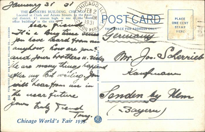 11321366 old postcard Chicago Illinois The Bankers Building postalisch gelaufen gute Erhaltung KatCode: 14140150000000
