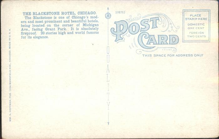 11321398 Chicago Illinois The Blackstone Hotel postalisch nicht gelaufen gute Erhaltung KatCode: 14140150000000