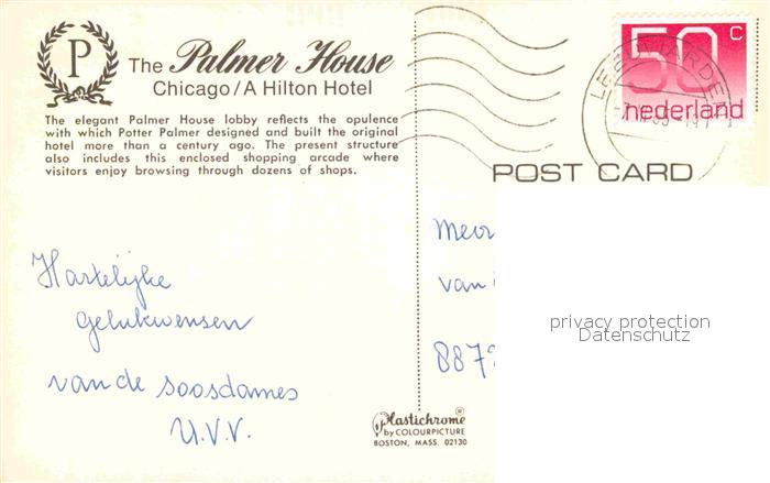 72897801 old postcard Chicago Illinois The Palmer House postalisch gelaufen Erhaltung siehe scans [FriedD77] KatCode: 14140150000000