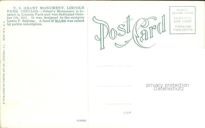 72081883 Chicago Illinois US Grant Monument Lincoln Park postalisch nicht gelaufen Erhaltung siehe scans KatCode: 14140150000000