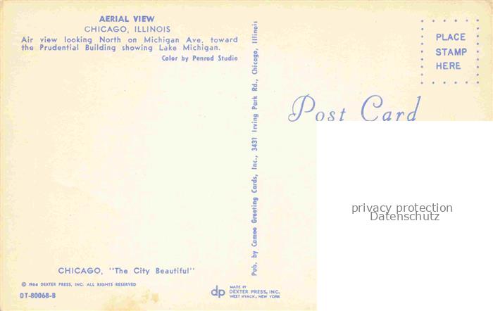74021128 CHICAGO Illinois USA Arial view looking north on Michigan Avenue Prudential Building Lake Michigan postalisch nicht gelaufen Fliegeraufnahme Erhaltung siehe scans [FriedD77] KatCode: 14140150000000