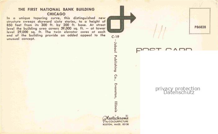 74091328 CHICAGO Illinois USA First National Bank Building postalisch nicht gelaufen Erhaltung siehe scans [IrynaD87] KatCode: 14140150000000