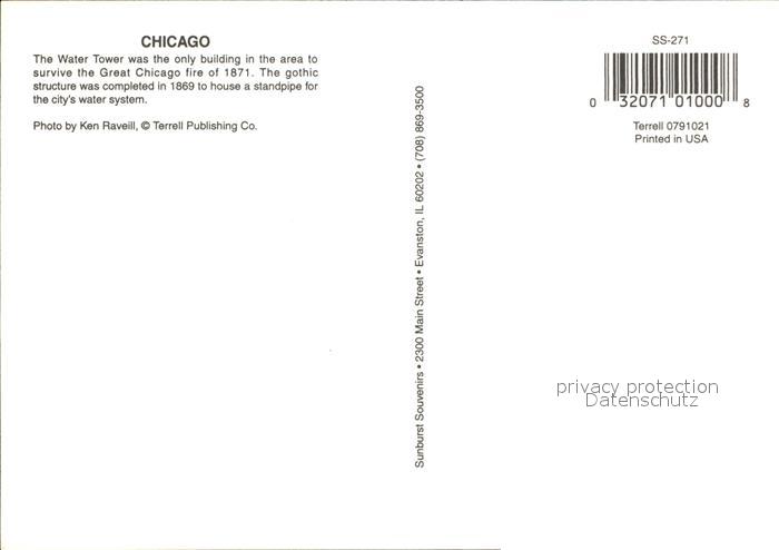 72556359 Chicago Illinois Water Tower postalisch nicht gelaufen Erhaltung siehe scans [AndreD76] KatCode: 14140150000000