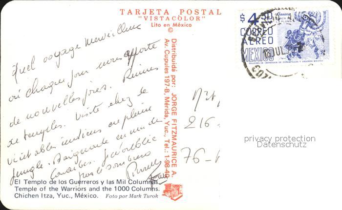 alte Postkarte Chichen Itza Temple of the Warriors and the 1000 Columns postalisch gelaufen Erhaltung siehe scans