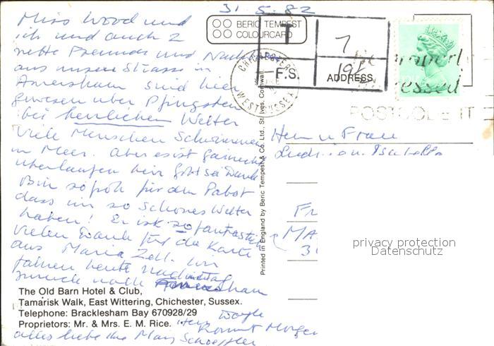 old postcard Chichester West Sussex The Old Barn Hotel & Club postalisch gelaufen Erhaltung siehe scans
