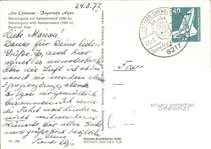 72210705 alte Postkarte Chiemgau Steinlingalm mit Kampenwand postalisch gelaufen Erhaltung siehe scans KatCode: 11110009187123