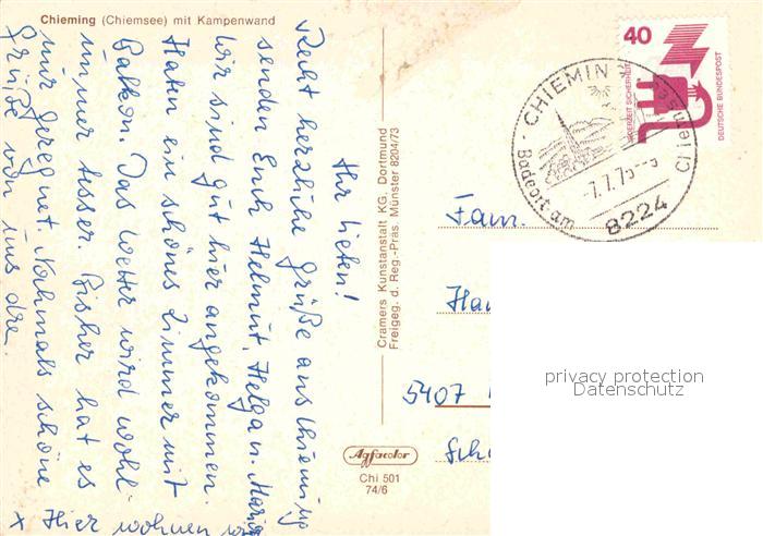 72886636 alte Postkarte Chieming Chiemsee Fliegeraufnahme mit Kampenwand postalisch gelaufen Erhaltung siehe scans [WerneD78] KatCode: 11110009189114