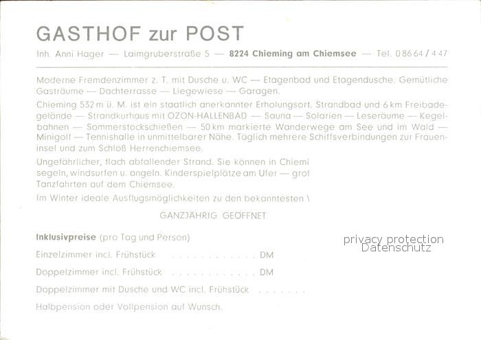 72467637 Chieming Chiemsee Gasthof zur Post postalisch nicht gelaufen Werbekarte (keine Postkarte) Erhaltung siehe scans KatCode: 11110009189114