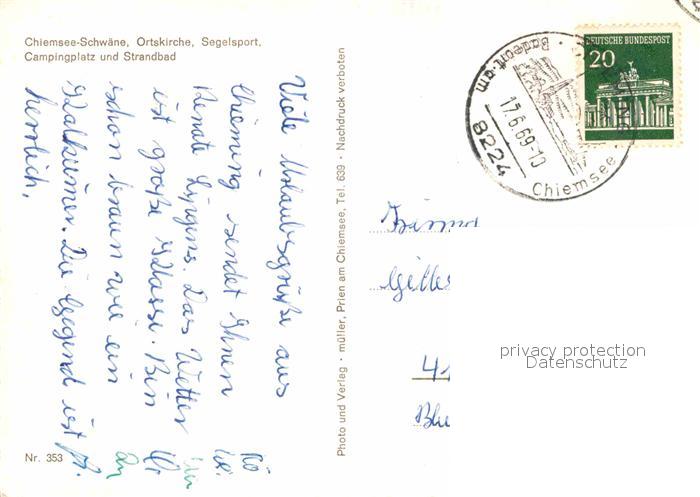 72656788 alte Postkarte Chieming Chiemsee Kirche Campingplatz Strandbad postalisch gelaufen Erhaltung siehe scans [AndreD76] KatCode: 11110009189114