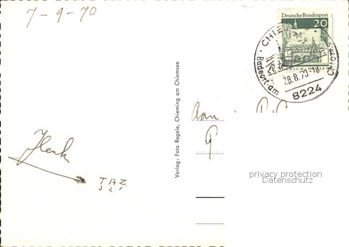 72427237 alte Postkarte Chieming Chiemsee Strand Liegewiese Kirche postalisch gelaufen Erhaltung siehe scans KatCode: 11110009189114