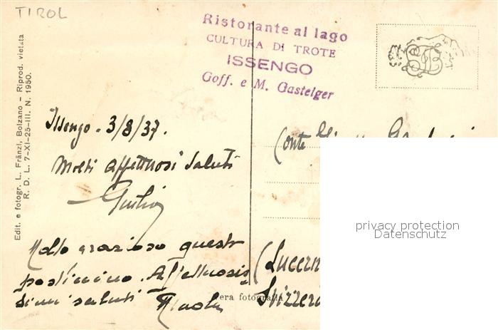 Chienes Kiens Casteldarne Castel Scaunia Lago d Issengo postalisch nicht gelaufen Erhaltung siehe scans [PaolaD17]
