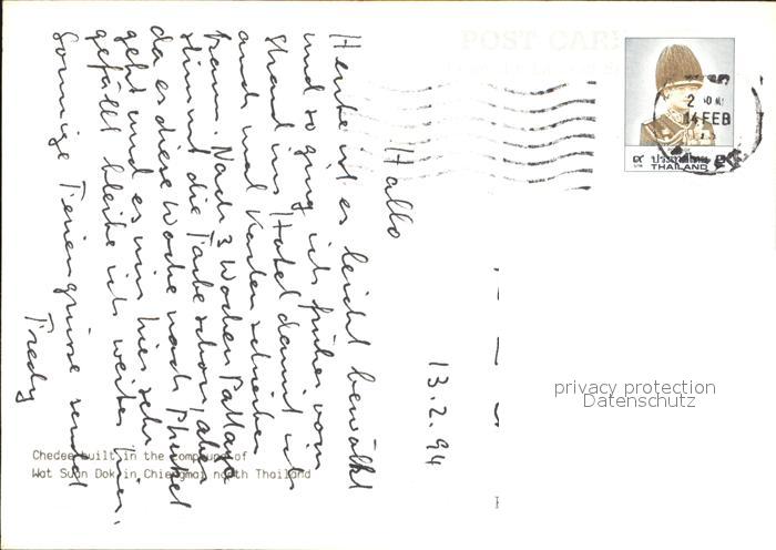 alte Postkarte Chiengmai Chedee built in the compound of Wat Suan Dok postalisch gelaufen Erhaltung siehe scans [WerneD78 kt117box]