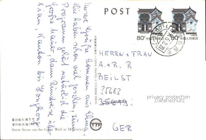 old postcard China Great Wall postalisch gelaufen Erhaltung siehe scans