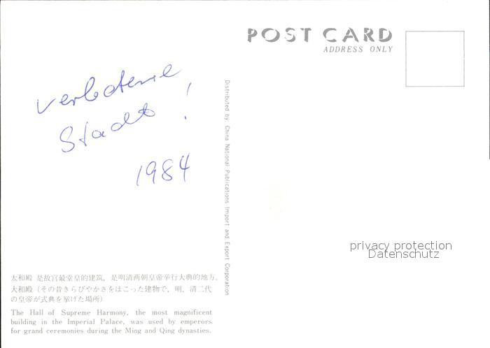 China Verbotene Stadt postalisch nicht gelaufen Erhaltung siehe scans
