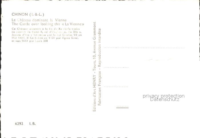 11903519 Chinon Indre et Loire Chateau dominant la Vienne postalisch nicht gelaufen Erhaltung siehe scans KatCode: 11170037137072