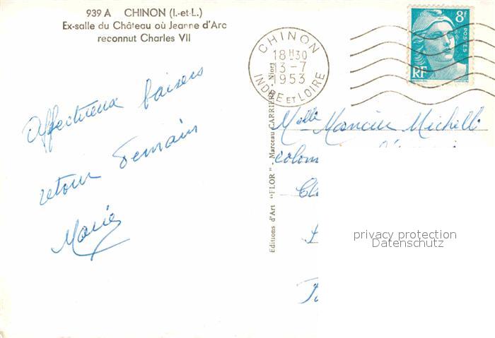 12811479 carte postale Chinon Indre et Loire Ex salle du Chateau ou Jeanne d Arc reconnut Charles VII postalisch gelaufen Erhaltung siehe scans [FriedD77] KatCode: 11170037137072