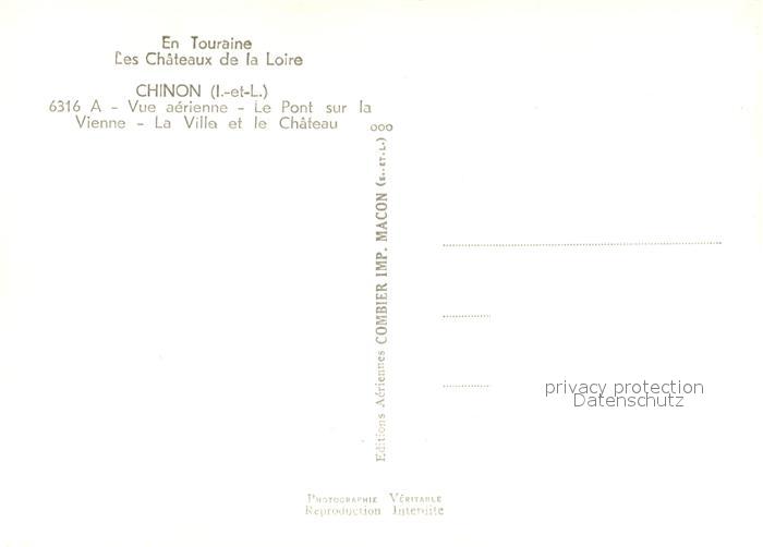 13277184 Chinon Indre et Loire Fliegeraufnahme Pont sur la Vienne Villa et Chateau postalisch nicht gelaufen Erhaltung siehe scans [LiesaD40] KatCode: 11170037137072