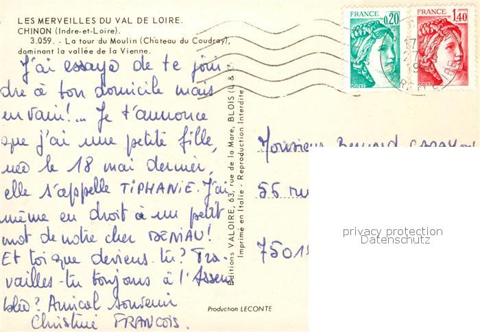 13521952 carte postale Chinon Indre et Loire Tour du Moulin Chateau du Coudray postalisch gelaufen Erhaltung siehe scans [KathaD81] KatCode: 11170037137072