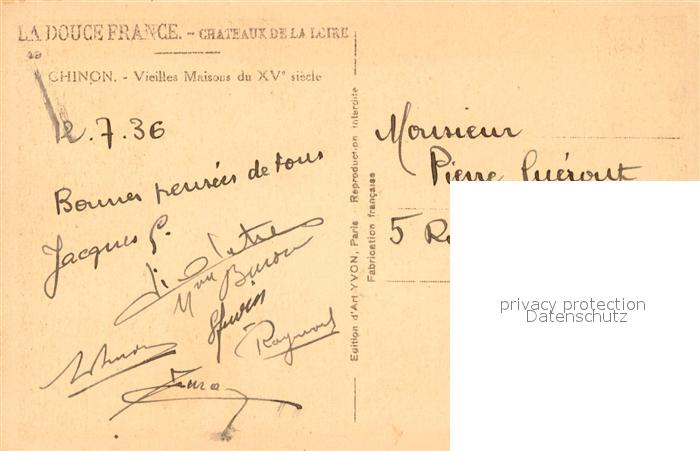 13621487 Chinon Indre et Loire Vieilles maisons du XVe siècle postalisch gelaufen Erhaltung siehe scans [FriedD77] carte postale Frie Katcode 11170037137072