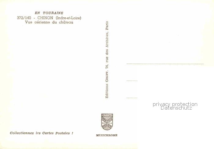 12711669 Chinon Indre et Loire Vue aerienne du chateau postalisch nicht gelaufen Erhaltung siehe scans [FriedD77] KatCode: 11170037137072
