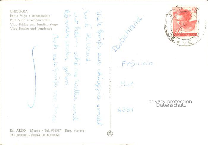 old postcard Chioggia Venetien Brueckenpartie postalisch gelaufen Erhaltung siehe scans