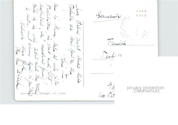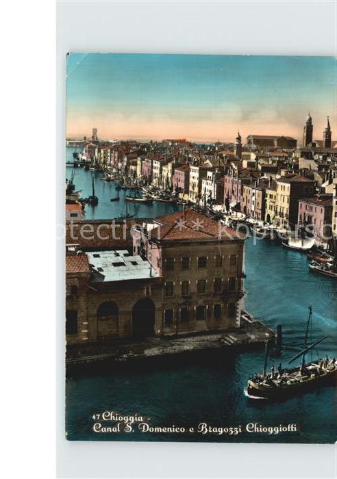 old postcard Chioggia Venetien Canal San Domenico Bragozzi Chioggiotti postalisch gelaufen Erhaltung siehe scans