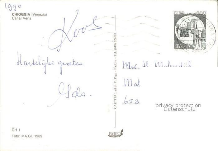 old postcard Chioggia Venetien Canal Vena postalisch gelaufen Erhaltung siehe scans