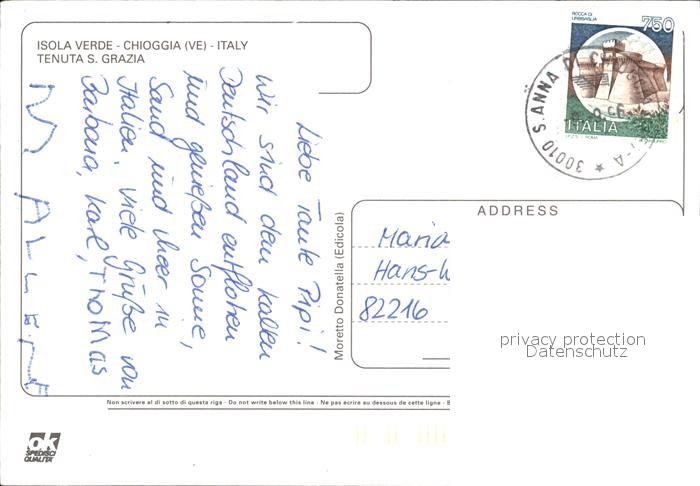 old postcard Chioggia Venetien Isola Verde Isamar postalisch gelaufen Erhaltung siehe scans