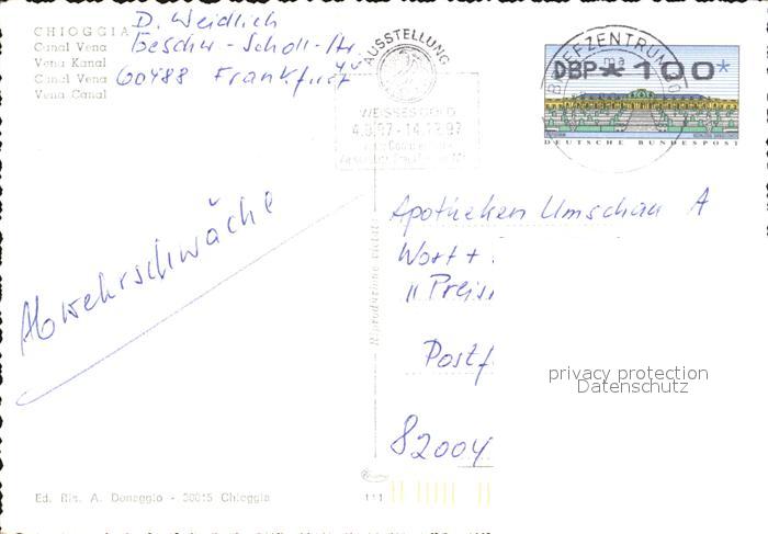 old postcard Chioggia Venetien Vena Kanal postalisch gelaufen Erhaltung siehe scans