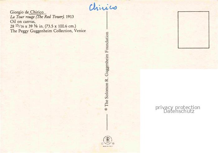 74067448 CHIRICO Giorgio de Kuenstlerkarte la Tour Rouge Red Towers Venice postalisch nicht gelaufen Erhaltung siehe scans [SanaeD93] KatCode: 22240000003200