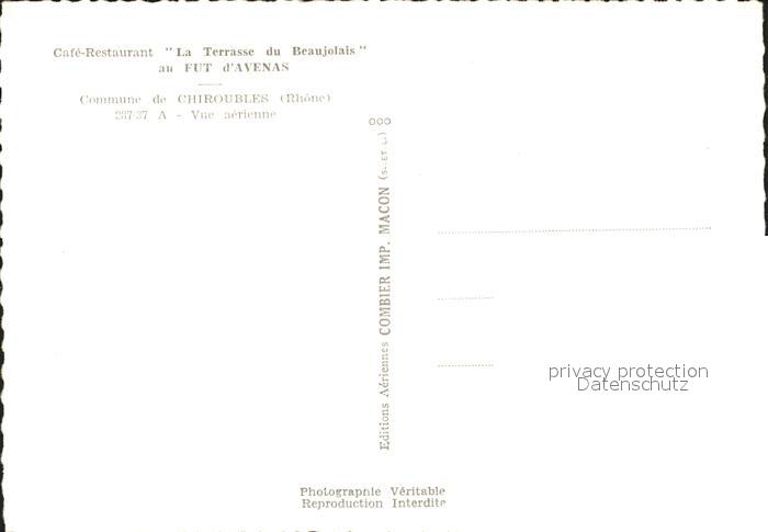 11916693 Chiroubles Cafe Restaurant La Terrasse du Beaujolais au Fut d Avenas vue aerienne postalisch nicht gelaufen Erhaltung siehe scans KatCode: 11170069269058