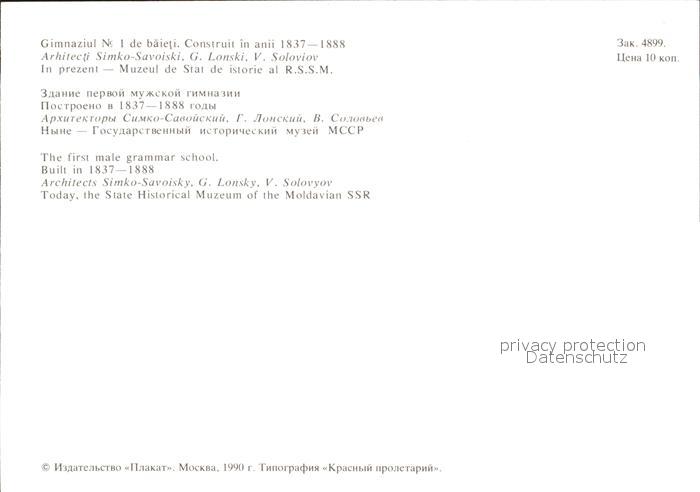 Chisinau Kichinev First male grammar school postalisch nicht gelaufen Erhaltung siehe scans
