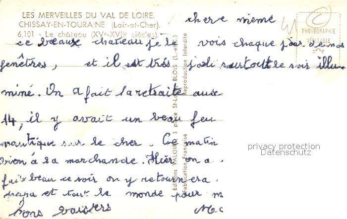 13535513 Chissay-en-Touraine Chateau Schloss postalisch nicht gelaufen Erhaltung siehe scans [FriedD77] KatCode: 11170041141051