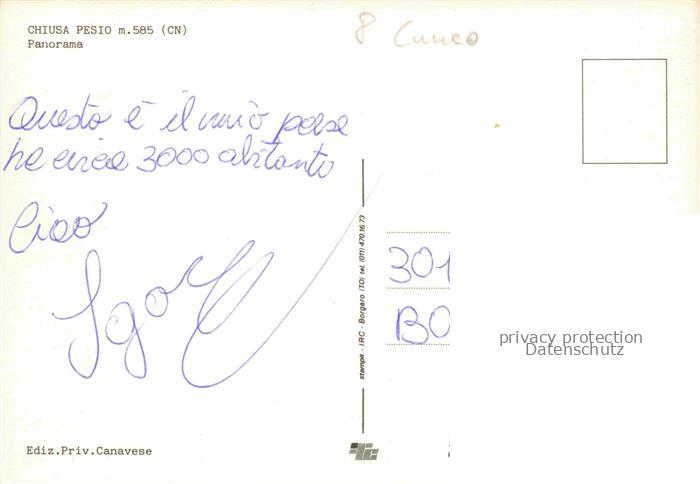 74092221 Chiusa Pesio 585m Cuneo Mondovi Piemonte IT Fliegeraufnahme postalisch nicht gelaufen Erhaltung siehe scans [WerneD78] KatCode: 11240