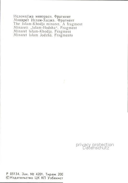 Chiwa Khiva Minaret Islam-Khodja postalisch nicht gelaufen Keine Postkarte (siehe scan) Erhaltung siehe scans [NatalD47 kt111box]