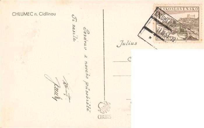 73958107 old postcard Chlumec Cidlinou Chlumetz Zidlina CZ Ortszentrum Platz postalisch gelaufen Erhaltung siehe scans [FriedD77] KatCode: 11520