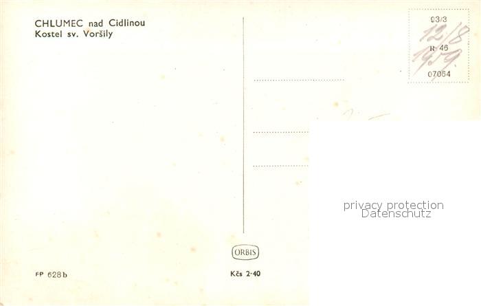 Chlumec Cidlinou Chlumetz Zidlina Kostel sv Vorsily postalisch nicht gelaufen Erhaltung siehe scans [WerneD78]