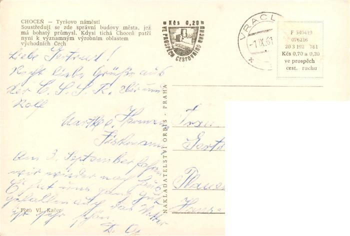 73864684 Chocen Chotzen CZ Tyrsovo Namesti Platz Zentrum postalisch gelaufen Erhaltung siehe scans [FriedD77] old postcard Frie Katcode 11520