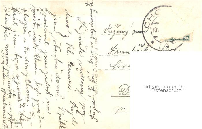 old postcard Chocen Chotzen Tschechien Namesti Platz postalisch gelaufen Erhaltung siehe scans [FriedD77]